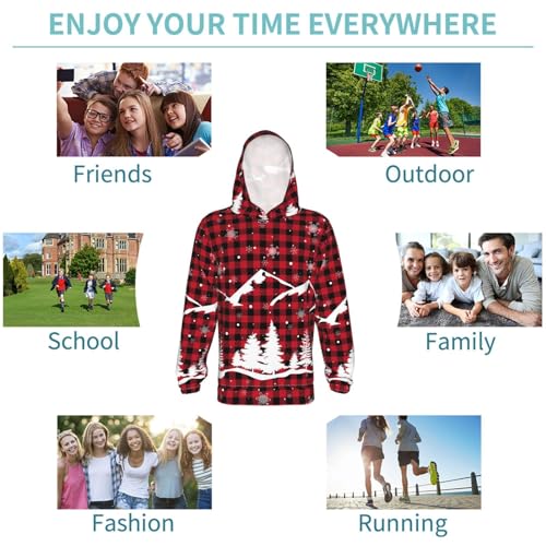 Christmas Tree Buffalo Plaid Kid Hoodies Boys Sweatshirts Girls Pullover with Pocket 5