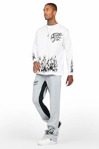 Men's Bubble White/Grey Long Sleeve T-Shirt/Baggy Pant Set 1