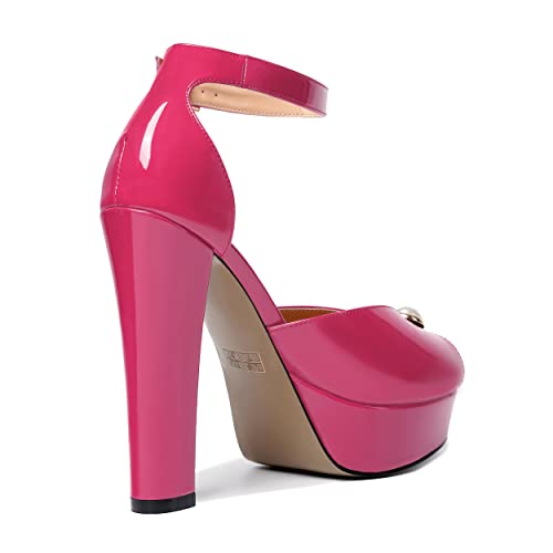 HOT ! WAYDERNS Womens Fashion Wedding Ankle Strap Platform Patent Adjustable Strap Buckle Peep Toe Block High Heel Pumps Shoes 5 Inch