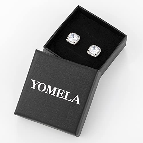HOT ! YOMELA Cubic Zirconia Earrings Studs, Halo CZ Birthstone Simulated Diamond Stud Earrings for Women