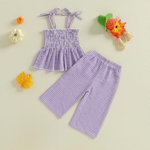 Kayotuas Halloween Toddler Girl Outfits Pumpkin Smocked Spaghetti Strap Tank Top Dress Gingham Plaid Pants Halloween Clothes 5