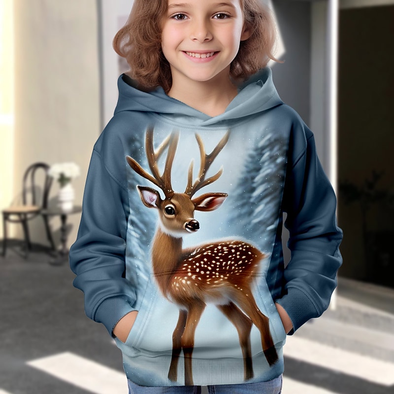 More information about Girls' 3D Animal Cartoon Deer Christmas Hoodie Hoodie Pullover Long Sleeve 3D Print Fall Winter Active Fashion Cute Kids 3-12 Years Outdoor Casual Daily Regular Fit