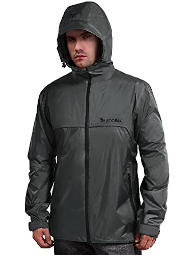 HOT ! Rodeel Men's Waterproof Rain Lightweight Reusable Hiking Hooded Coat Jacket for Outdoor Activities