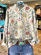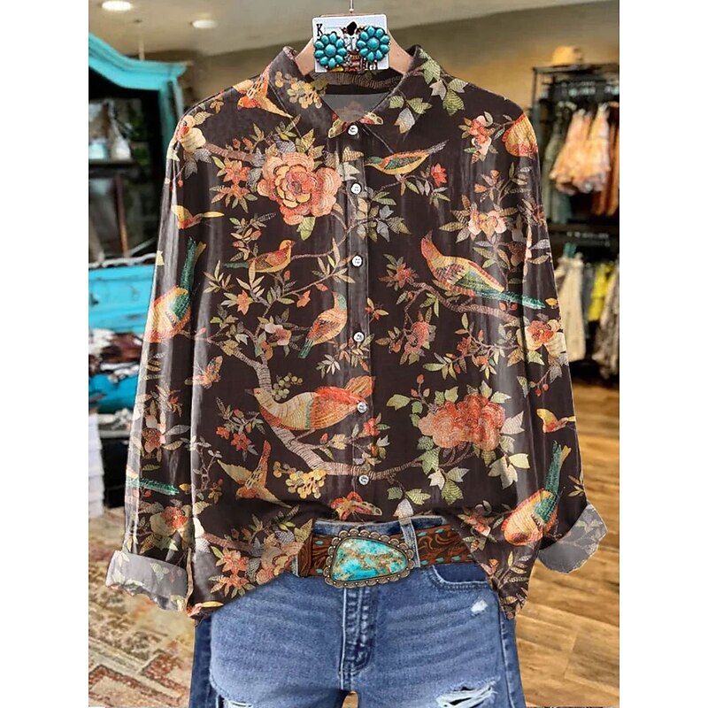 More information about Women's Shirt Graphic Animal Elegant Bohemia Daily Long Sleeve Shirt Collar Regular Tops Work Daily Buttons Print Red Orange Brown Green Beige Spring Fall Winter