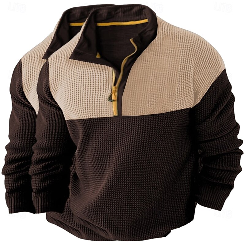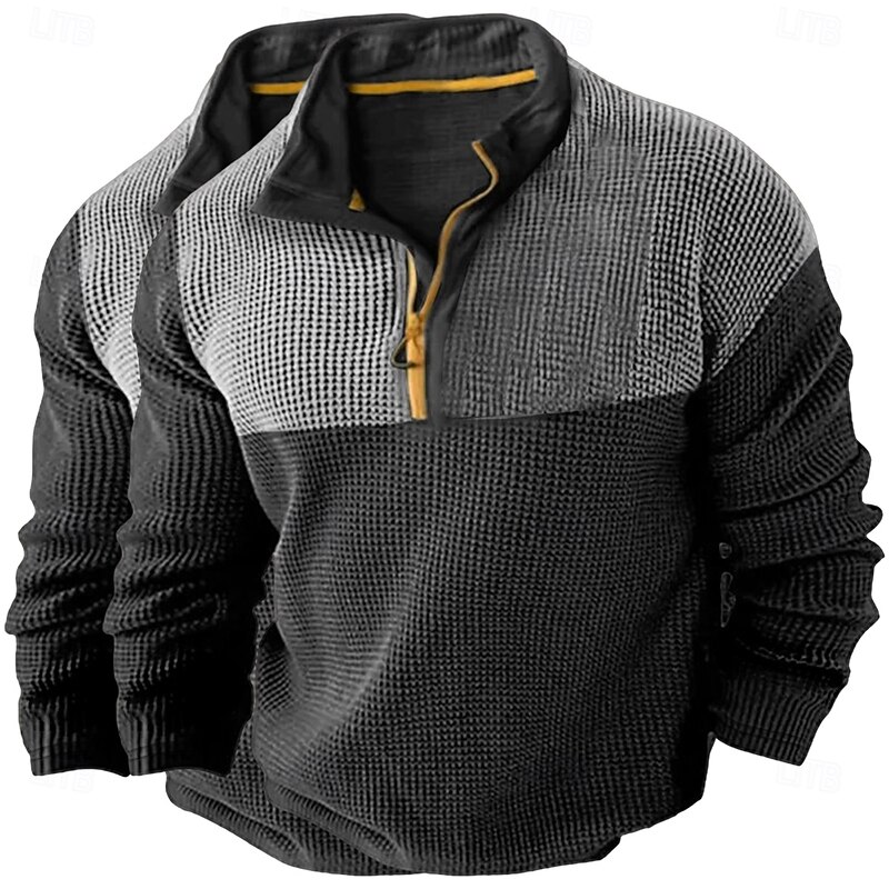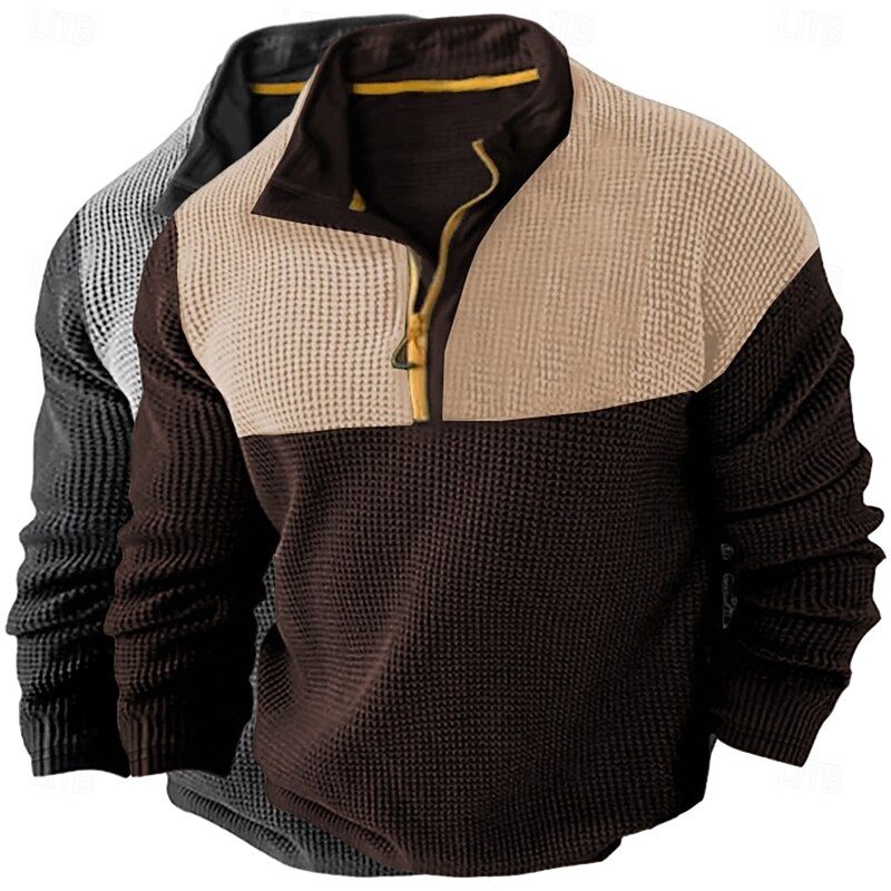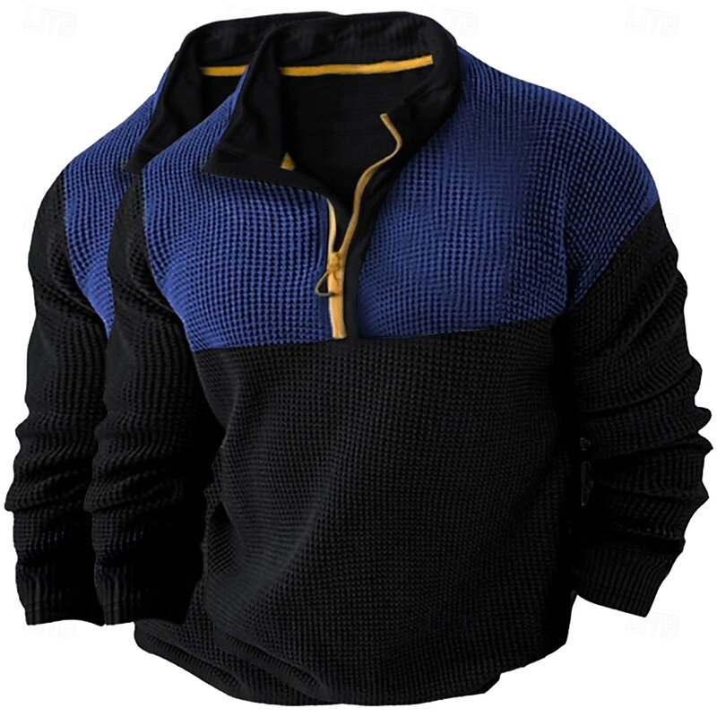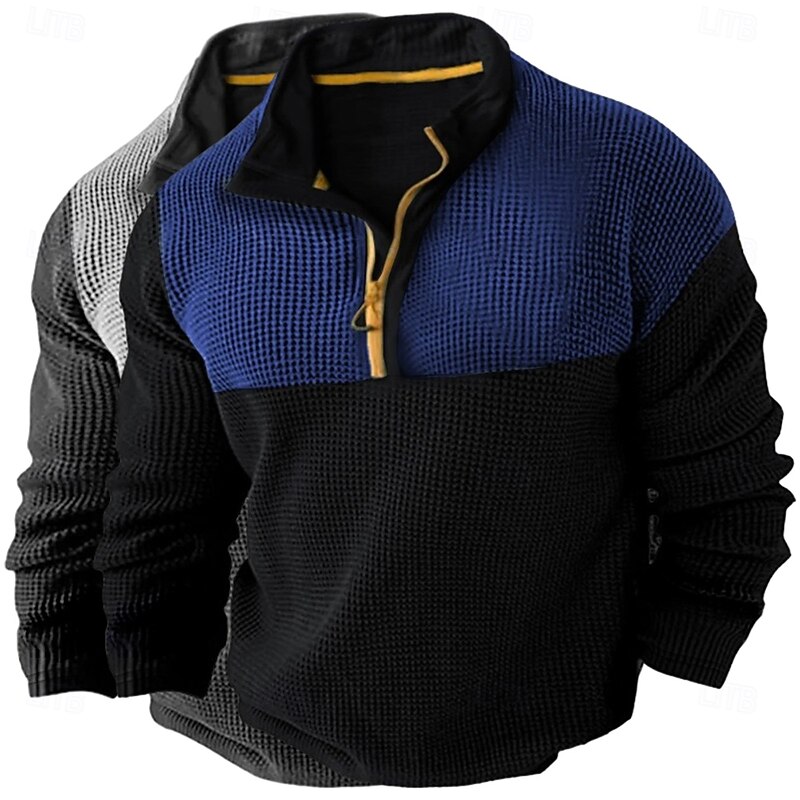 More information about Men's Waffle Shirt T Shirt Zip Half Shirt Tee Top Long Sleeve Quarter Zip Fall Spring & Fall Color Block Fashion Designer Basic Patchwork 2 Piece Color Block Vacation Street Casual Grey / Blue Light