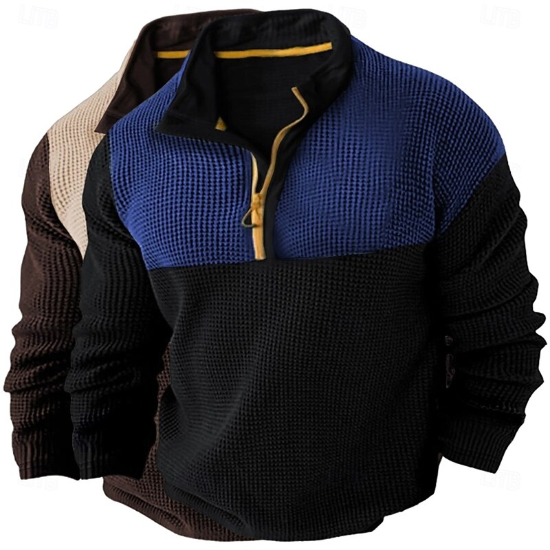 sought-after ! Men's Waffle Shirt T Shirt Zip Half Shirt Tee Top Long Sleeve Quarter Zip Fall Spring & Fall Color Block Fashion Designer Basic Patchwork 2 Piece Color Block Vacation Street Casual Grey / Blue Light