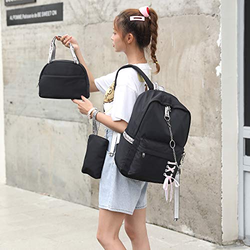 Hey Yoo School Backpacks for Girls Backpack with Lunch Box Teen Girl Bookbag Set School Backpack for Girls (Black) 4