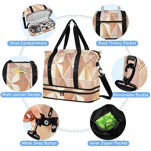 Gold Rose Gold Travel Duffel Bags Carry on Bag with Toiletry Bag for Trip Foldable 7