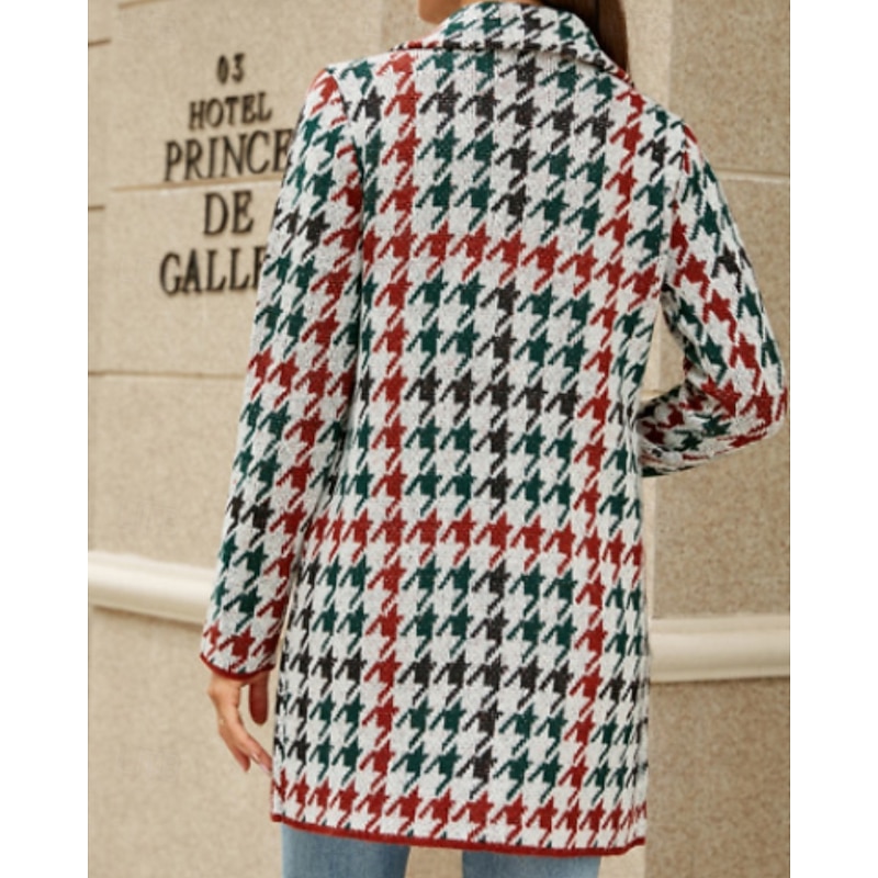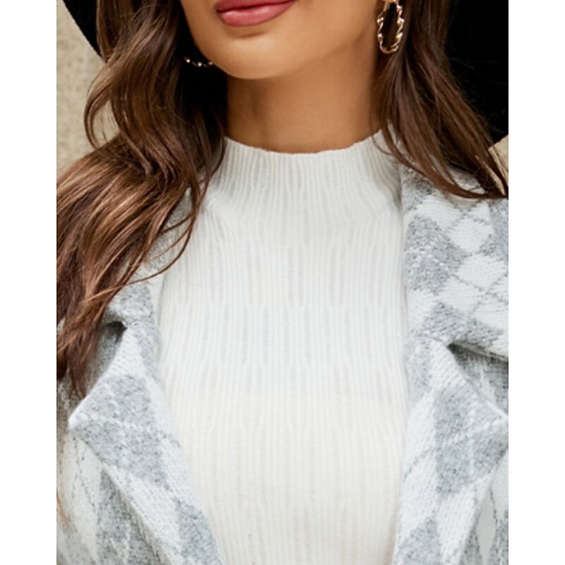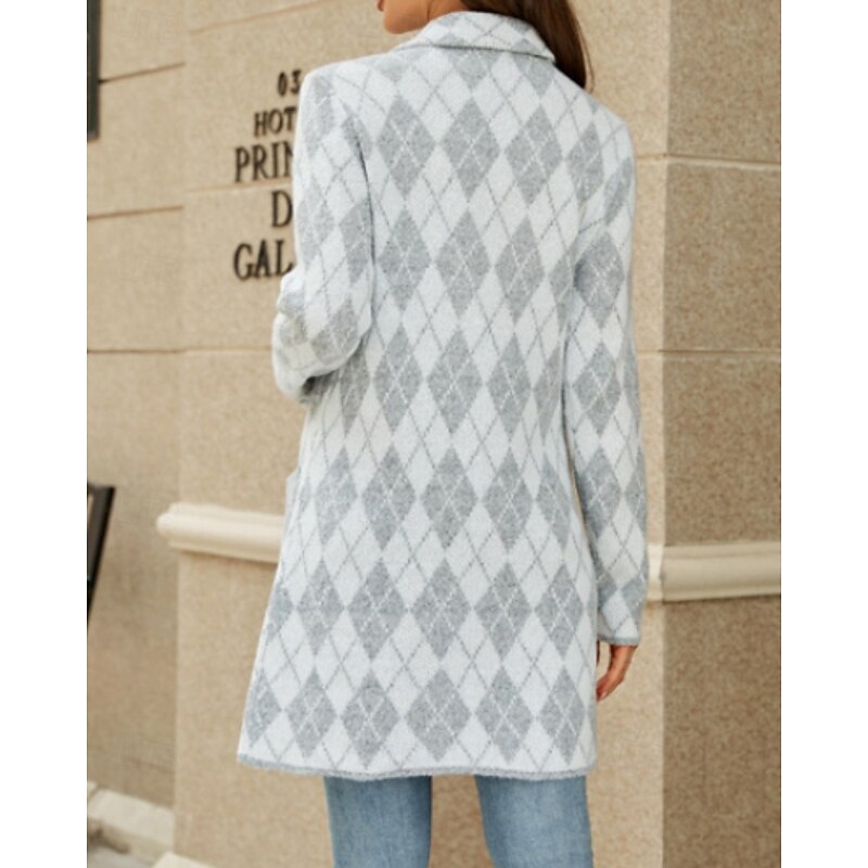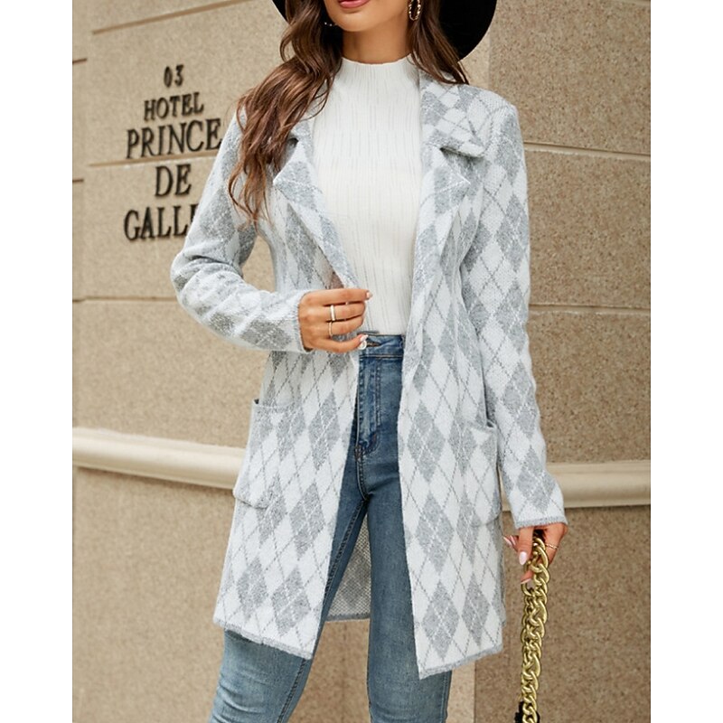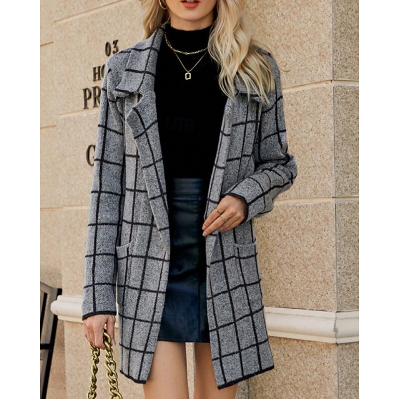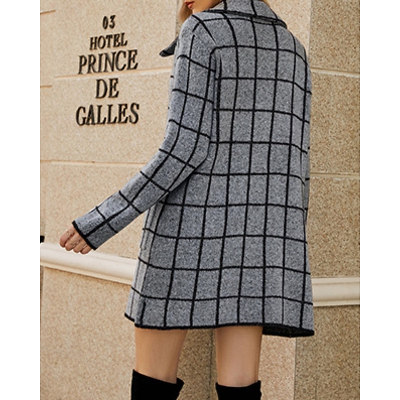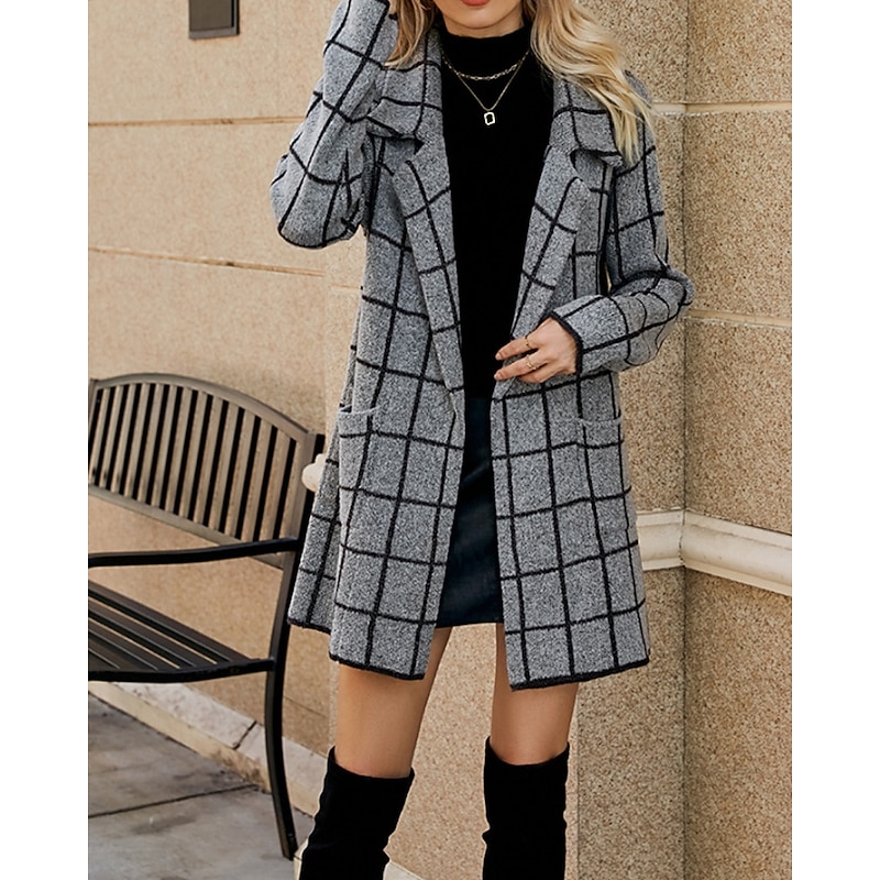Women's Blazer Comfortable Pocket Casual Plaid Vacation Street Going out Weekend Long Turndown Regular Fit Long Sleeve Outerwear Khaki Light Grey Dark Gray Fall Winter 11