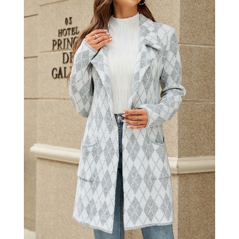 Women's Blazer Comfortable Pocket Casual Plaid Vacation Street Going out Weekend Long Turndown Regular Fit Long Sleeve Outerwear Khaki Light Grey Dark Gray Fall Winter 1