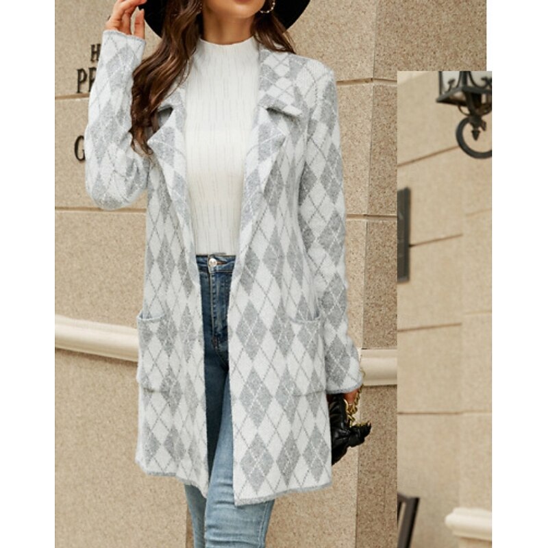 Women's Blazer Comfortable Pocket Casual Plaid Vacation Street Going out Weekend Long Turndown Regular Fit Long Sleeve Outerwear Khaki Light Grey Dark Gray Fall Winter 17