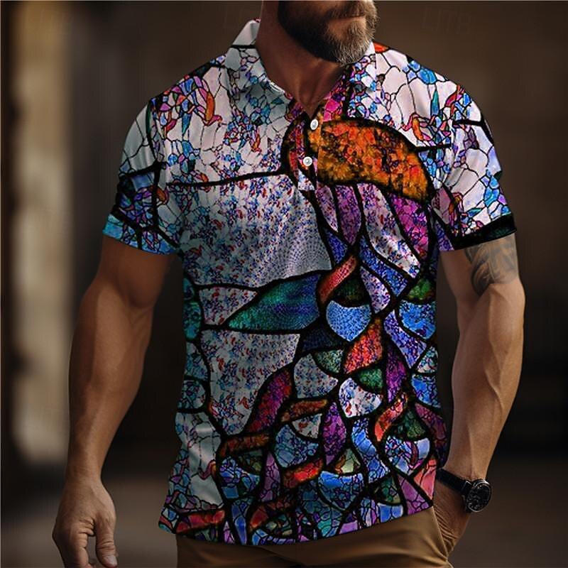 Men's Graphic Polo Shirts Golf Shirt Short Sleeve Polo Shirts Collared Shirts Casual Vacation Wear Rave Wear Party Outfits Buttons 3D Print Summer Blue Purple Green 6