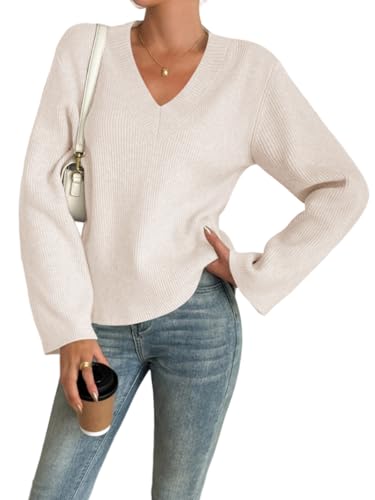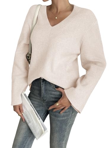 HOT ! Yousify Womens V Neck Oversized Sweaters Long Sleeve Knit Pullover Trendy Casual Chunky Sweater