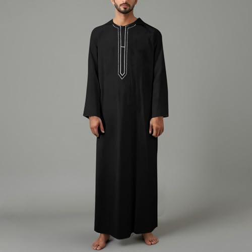 Cambkatl Mens Kaftan Thobe Embroidered Casual Crewneck Shirts Long Sleeve Robe Loose Muslim Gown Caftan 1