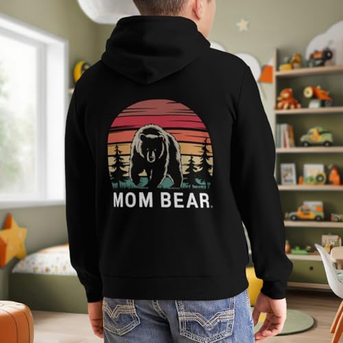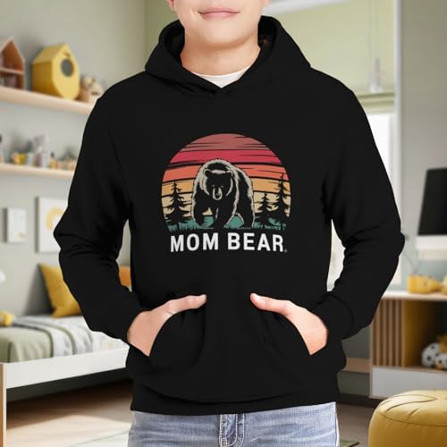 HOT ! Kids Retro MAMA BEAR Women Family Mom Gift Vintage Boys Girls Lightweight Kangaroo Pocket Fleece Hoodies