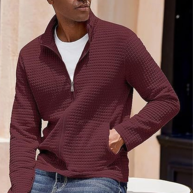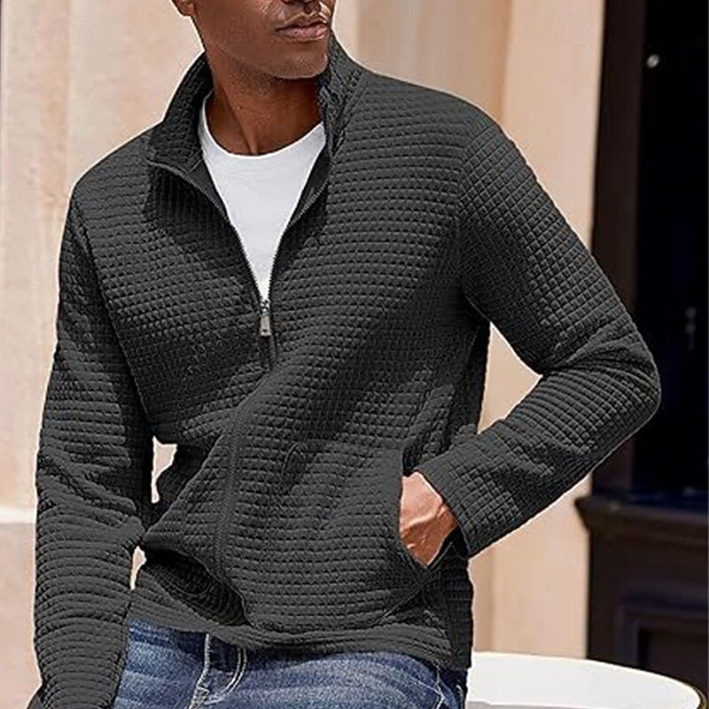 More information about Men's Lightweight Jacket Waffle Jacket Casual Jacket Vacation Daily Warm Pocket Fall & Winter Plain Fashion Classic Stand Collar Regular Black White Wine Khaki Army Green Jacket