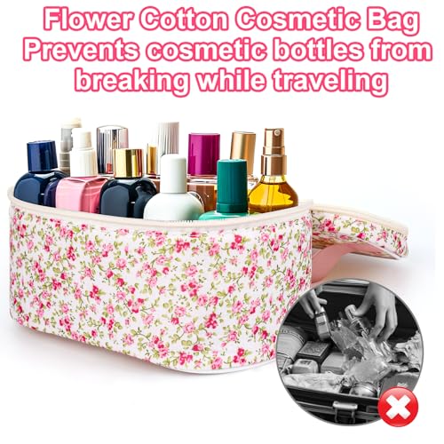 BABORUI Quilted Makeup Bag – Large Travel Cosmetic Bags for Women, Cotton Padded Toiletry Organizer with Compartments – Lightweight & Durable for Travel or Daily Use 5