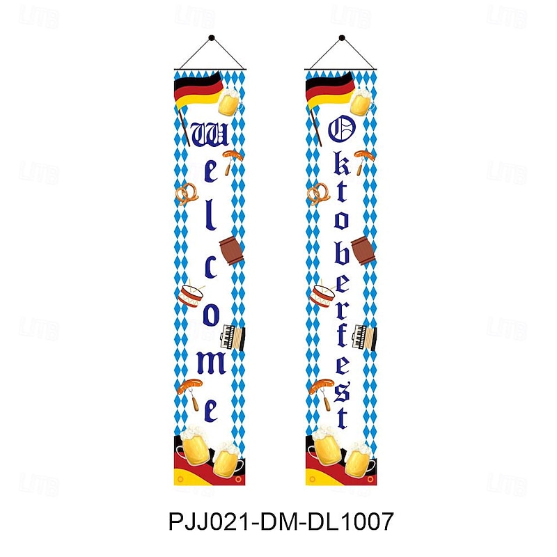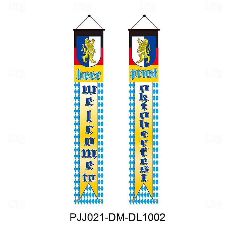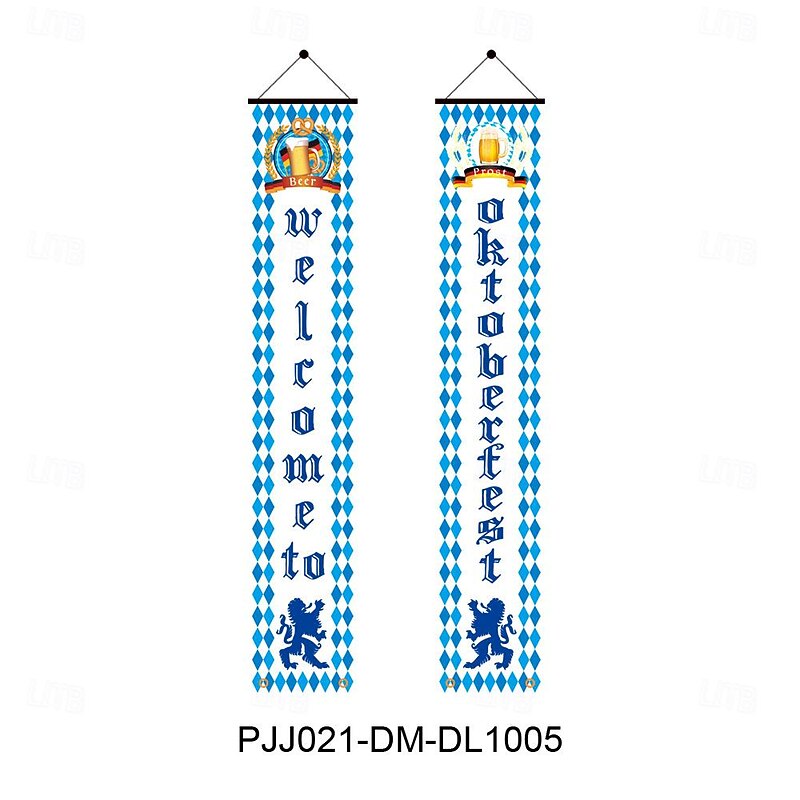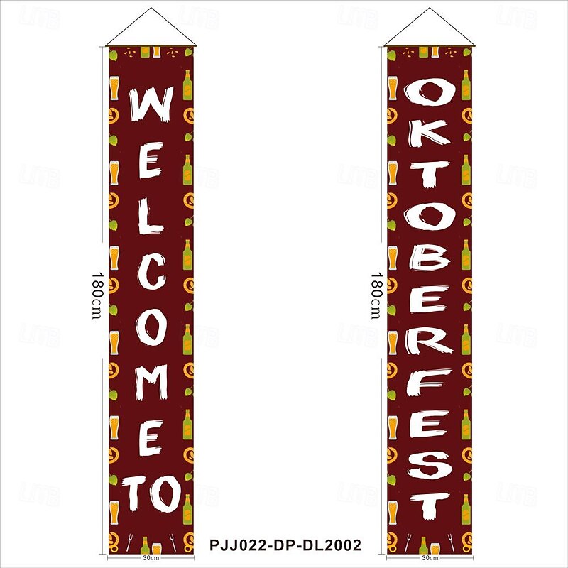 Highlights [Fabric and Material] Crafted from durable, weather-resistant polyester, these German Oktoberfest door couplets boast a resilient construction perfect for both indoor and outdoor settings. The high-quality polyester ensures they can withstand the elements while maintaining their vibrant appearance throughout the festive season. [Design and Structure] Featuring a tall and eye-catching design, these couplets are adorned with traditional Bavarian blue and white diamond patterns, an iconic motif of Munich's famous beer festival. The 3D print style adds depth and dimension, enhancing the overall authenticity of the decor. [Design Highlights] The couplets display bold, elegant fonts with the words "Welcome" and "Oktoberfest," capturing the authentic spirit of the celebration. Their classic design is further accentuated by their size, measuring 12 x 39 inches, which ensures they stand out prominently in any setting. [Usage Scenarios] Ideal for creating a festive atmosphere at home parties, beer halls, or public event venues celebrating Oktoberfest. These decorations are perfect for event planners and hosts looking to infuse cultural richness and joyful celebration into their setups. [Size Information] Available in dimensions of 12 x 39 inches (30cm x 100cm), these couplets are designed to suit various decoration needs, fitting well in both intimate and grand settings, ensuring a captivating visual impact regardless of the space.