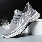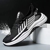 More information about Men's Sneakers Casual Shoes Sporty Look Flyknit Shoes Running Basketball Hiking Vintage Sporty Casual Outdoor Daily Tissage Volant Breathable Comfortable Slip Resistant Elastic Band Black Grey Striped