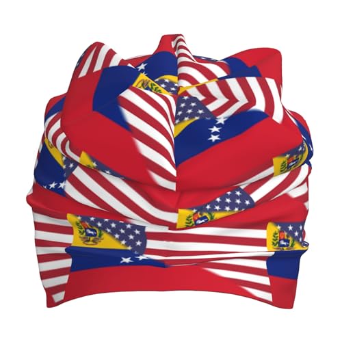 American Flag and Venezuelan Flag Kids Leisure Elastic Knitted Hat Junior Large Size Knit Cap Child Beanie Black 1