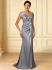 $169.99 - Mermaid / Trumpet Mother of the Bride Dress Elegant Crew Neck Court Train Satin Short Sleeve with Ruched 2025. Shop for cheap Mermaid Evening Dresses online? Buy at lightinthebox.com on sale today!