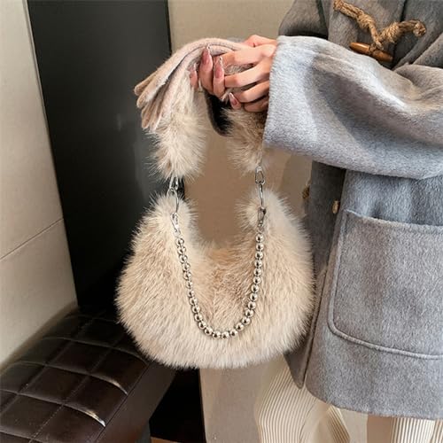 Plush Underarm Bag Ladies Fluffy Shoulder Bag, Furry Purses and Handbags, Women Clutch Tote Crossbody with Chain Strap