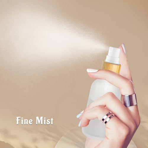 12 Pack 2 oz Glass Spray Bottles,Empty Perfume Fine Mist Atomizer,Natural Bamboo Pump Head Travel Liquid Holder Containers for Cologne,Essential Oils,Body Sprays,Room Sprays-Clear Frosted 5