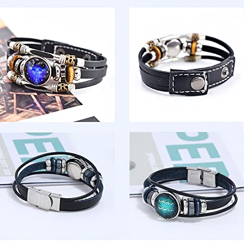 • MATERIAL:High quality leather,bracelet buckle use sturdy stainless steel,zodiac charms are glass.The size can be adjusted freely, suitable for most people.