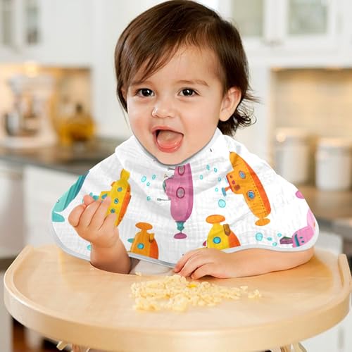 Bolaz Baby Burp Cloths 4 Pack,Submarine Pattern,Feeding Cloths Face Towel Super Absorbent Soft Cotton Burping Rags Feeding Bibs 5
