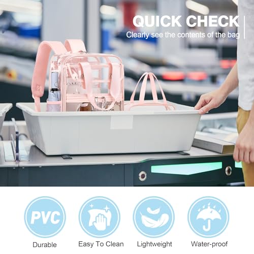 • COMFORTABLE AND DURABLE - No need to worry about comfort and load bearing! Our heavy duty clear backpack shoulder straps undergo a design with increased width and thickness, soft and breathable, providing you with a more comfortable backpack experience. The bottom of the main compartment is equipped with load-bearing pad, which prevents the contents of the bag from scratching the bottom of the backpack when you are using it, and also increases the load-bearing capacity.