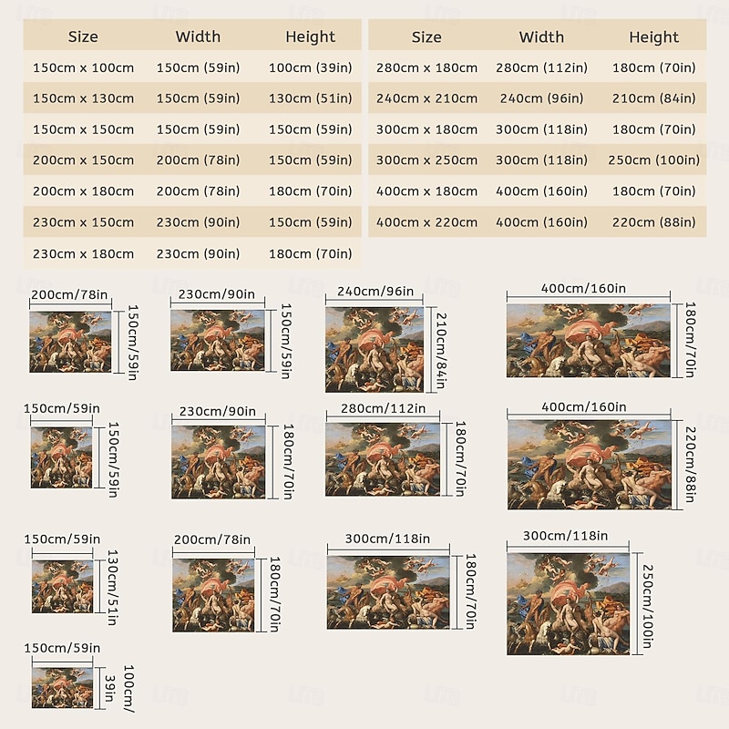 Highlights 【Durable Construction】 Crafted with high-quality polyester fabric, this tapestry is built to last. Its robust composition ensures that you can enjoy its beauty for years to come. 【Soft and Lightweight】 This tapestry is soft to the touch and lightweight, making it perfect for both indoor and outdoor use. 【Multiple Size Options】 Available in different sizes to accommodate any room's dimensions. 【Intricate Design】 The tapestry features a captivating design inspired by life itself. Its vivid imagery, crisp lines, and vibrant colors will become a conversation piece in any room. 【Versatility at Its Best】 Not just for wall decor, this tapestry can also double as a tablecloth or a picnic blanket, adding functional versatility to its artistic charm. 【Note】 1. Please allow 1-2cm (0.4"-0.8") deviations due to manual measurement. 2. Please understand the tiny color vary from the product due to different light and screen display.