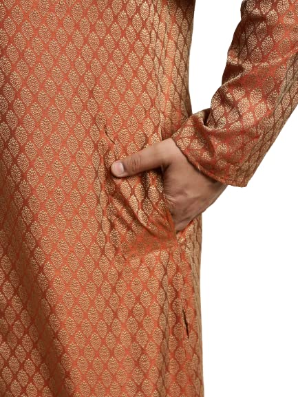 More information about Sojanya Plus (Since 1958) Men's Jacquard Silk Maroon Self design ONLY Long Kurta