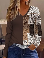 More information about Women's T Shirt Graphic Leopard Geometric Vintage Stylish Classic Long Sleeve V Neck Regular Tops Daily Print Brown Spring Fall Winter