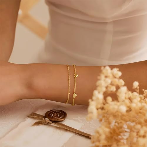 • MATERIAL: Trendy 14K Gold Plated Heart Bracelet for women Made of 14K gold-plated material to ensure long-lasting colorfastness, hypoallergenic to the skin, suitable for all-weather wearing