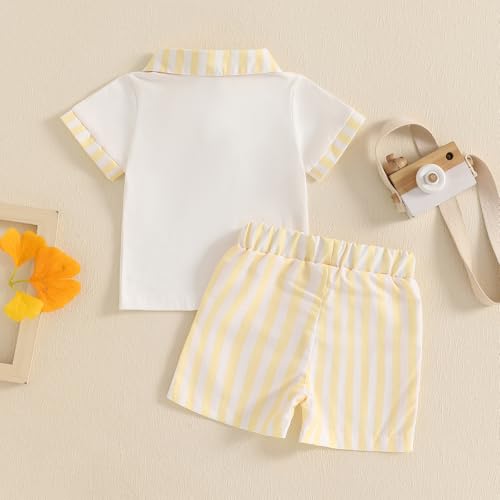 Toddler Boys Summer Outfits Baby Boy Buttons Short Sleeve T-Shirts Stripe Shorts 2Pcs Clothes Beach Shorts Set 7
