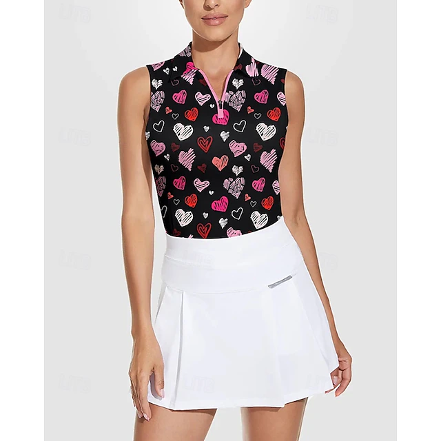 $22.99 - Women's Heart Tennis Shirt Sleeveless Print UPF50+ Quick Dry Tennis Golf Badminton Zip Collar Tee Tshirt Top Black Tennis Clothing 2025. Shop for cheap Women's Shirt online? Buy at lightinthebox.com on sale today!