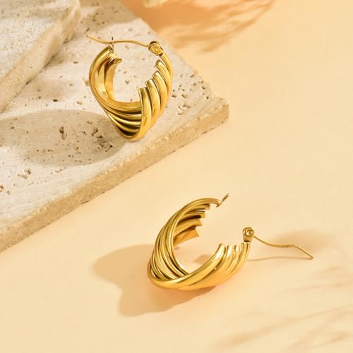 • Material and Craftsmanship:The big hoop earrings for women is made of high-quality stainless steel, and is plated with 18K gold to ensure long-lasting shine.Earrings are hypoallergenic, nickel free, and lead-free.