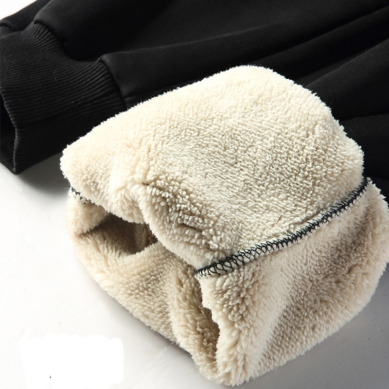 More information about Men's Sherpa Fleece Pants Sweatpants Joggers Winter Pants Pocket Drawstring Elastic Waist Plain Warm Soft Casual Daily Fashion Streetwear Black-White Black Micro-elastic