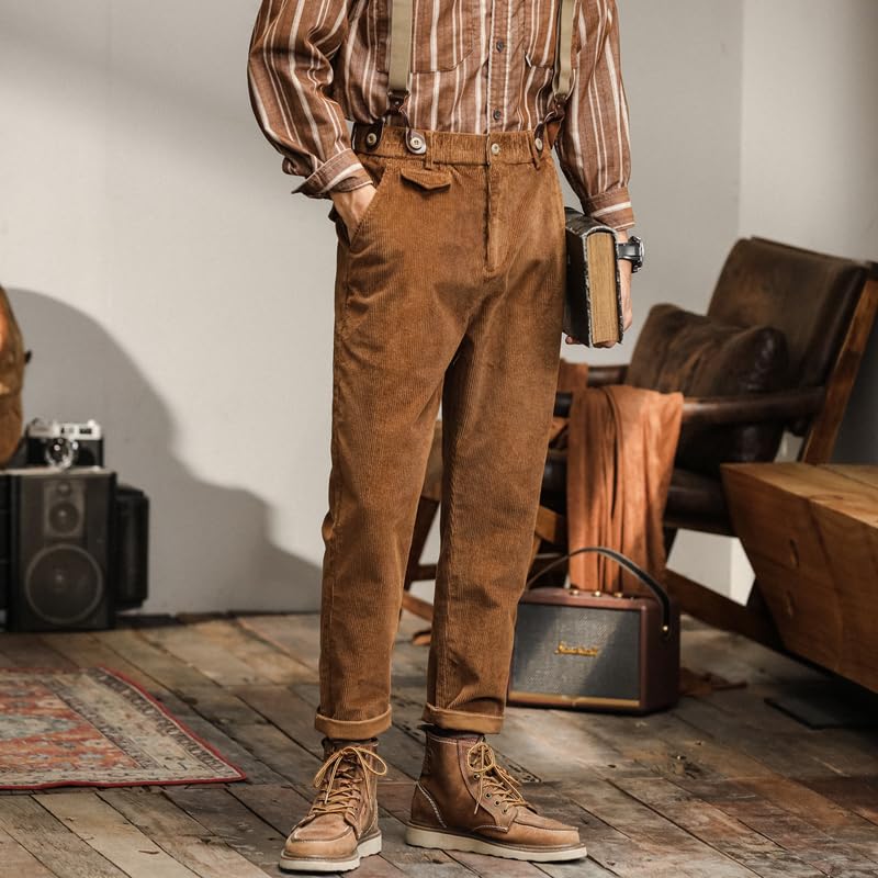 Men's Corduroy Suspenders Pants Straight Leg Autumn 7