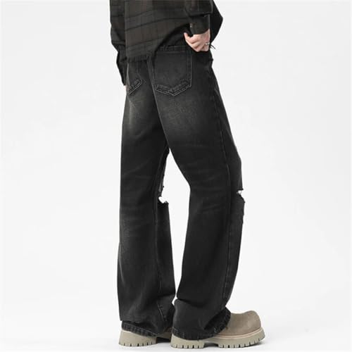Men's Worn-Out Jeans Hole Design Loose Denim Pants Straight Menwear 5
