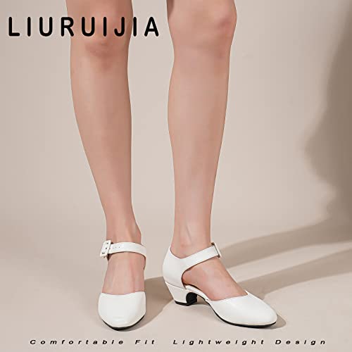 LIURUIJIA Women's Buckle Strap Low Block Heel Dress Shoes Bridal Wedding Heels Pumps White Matte 45 US 11