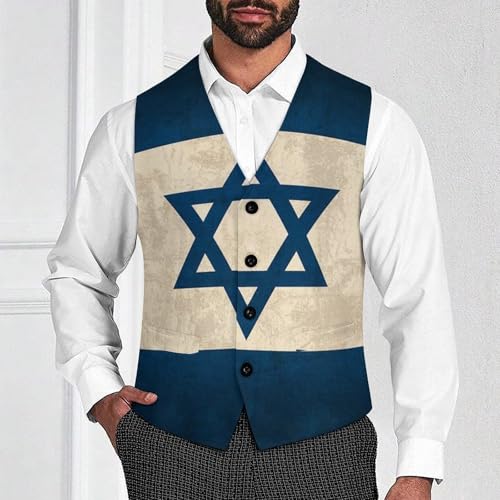 Vintage Israel Flag Funny Men's Formal Suit Vest Casual Business Dress Waistcoat Printed Vest Slim Fit 3