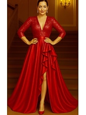 $139.99 - Red Black A-Line Evening Gown Elegant Formal Dress Formal Wedding Floor Length 3/4 Length Sleeve V Neck Pocket Stretch Satin with Ruffles 2025 2025. Shop for cheap A-Line Evening Dresses online? Buy at lightinthebox.com on sale today!
