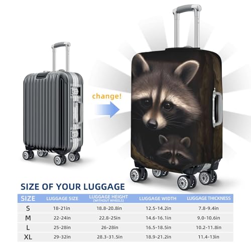 HOT ! Cute Raccoon Travel Luggage Cover Fits 18-32 Inch Luggage, Elastic Suitcase Cover Protector with Concealed Zipper for Wheeled Suitcase Tsa Approved