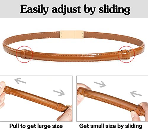 Skinny Leather Belts for Women Slim Waist Belt Patent Leather with Gold Buckle for Dress 5