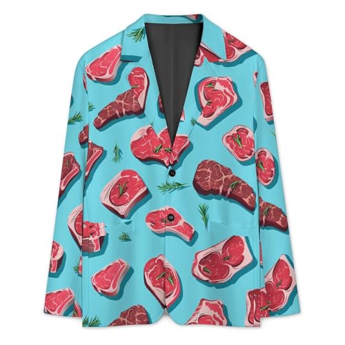 Meat Slices Pattern Print Mens Casual Blazer Button Suit Jacket Lightweight Sport Coat for Work Business 6