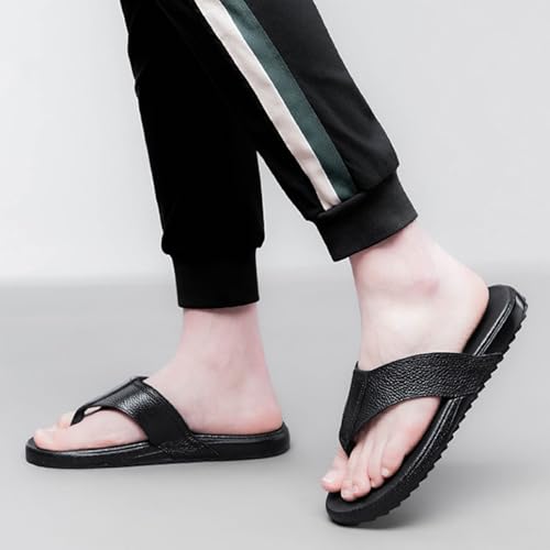 Men's Genuine Leather Round Toe Summer Flat Flip Flops Fashion Lightweight Non-Slip Comfort Slip On plush Sole Thong Sandals for Pool Casual Beach Slides