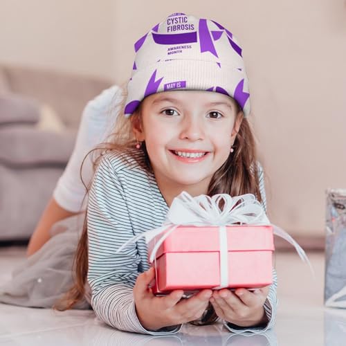 Cystic Fibrosis Awareness Month Purple Ribbon Kids Beanie Hat for for Girls Boys Children Cap Winter Knitted Chemo Cancer Headwear Accessories Gifts Decoration 1