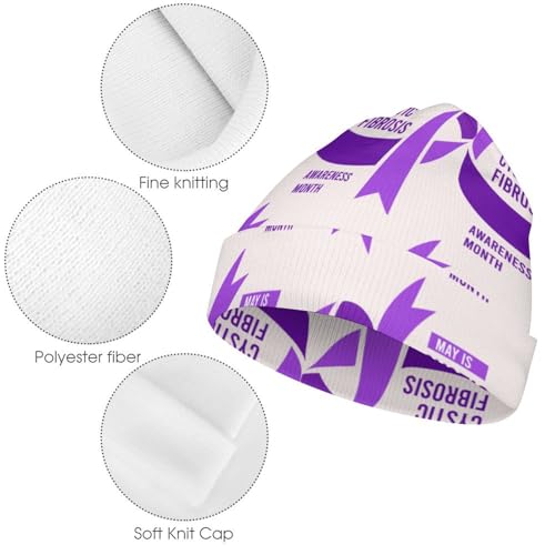 Cystic Fibrosis Awareness Month Purple Ribbon Kids Beanie Hat for for Girls Boys Children Cap Winter Knitted Chemo Cancer Headwear Accessories Gifts Decoration 7