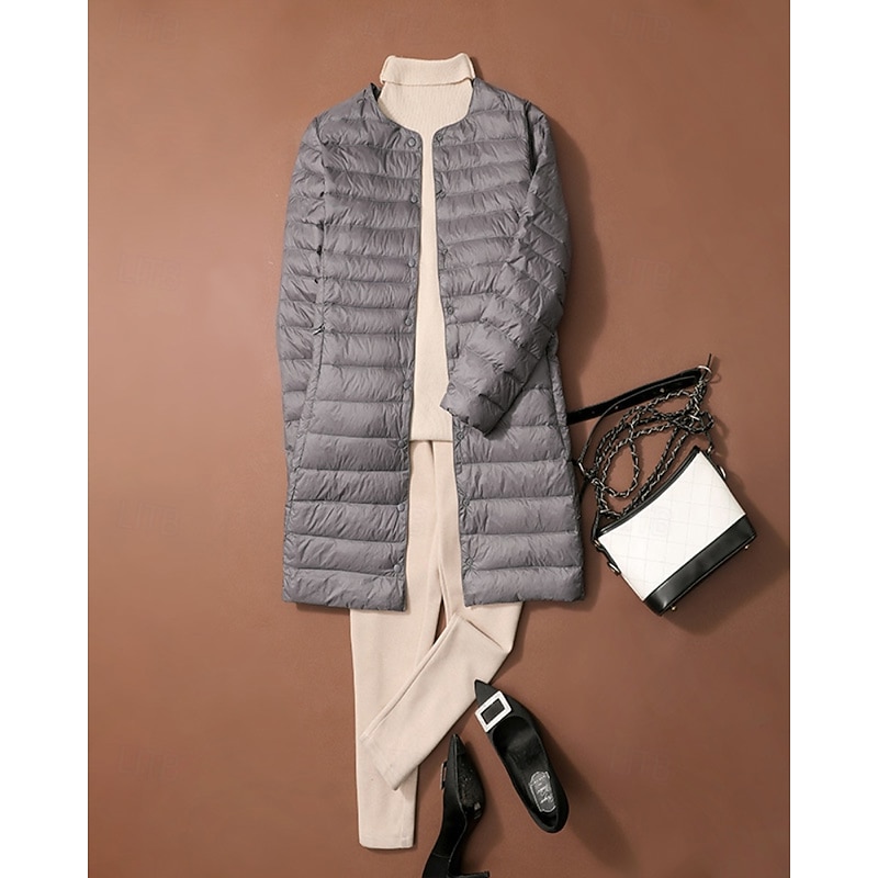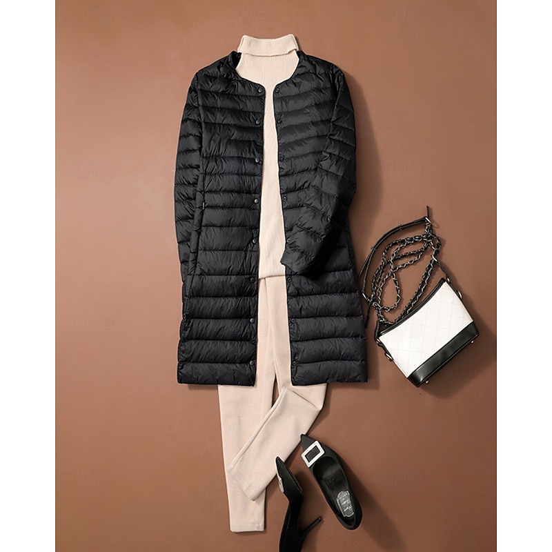 More information about Women's Down Jacket Coat Warm Comfortable Buttons Casual Plain Outdoor Vacation Street Single Breasted Long Crewneck Regular Fit Long Sleeve Outerwear Black White Pink Fall Winter